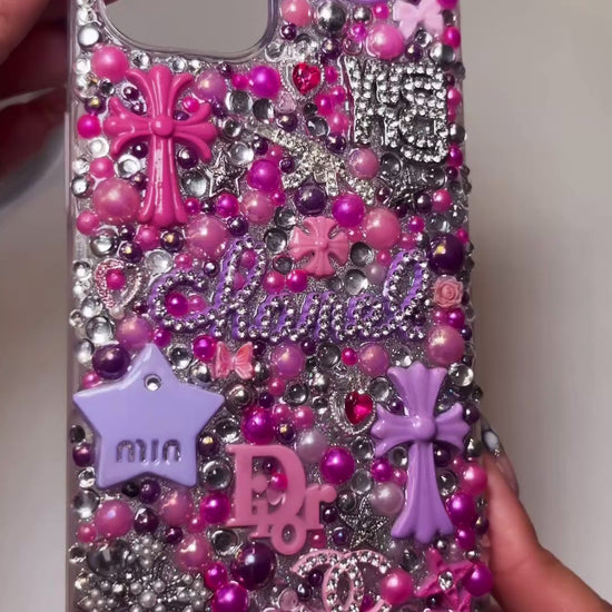 This handcrafted masterpiece features premium rhinestones, luxe designer-inspired charms, and candy-colored pearls that shimmer from every angle. Available in multiple colorways! (Charm placement may vary slightly)