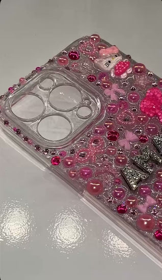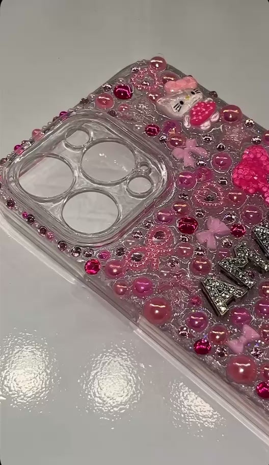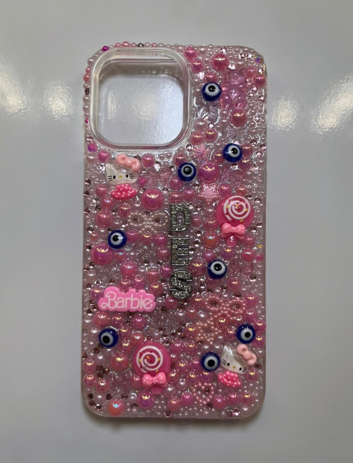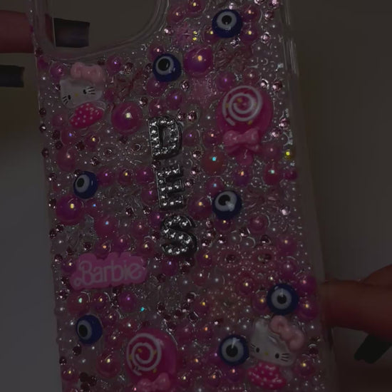 Make your phone as iconic as you are! Barbie vibes, Hello Kitty charm, and sparkle for days. Made for the girls who get it — one-of-a-kind and only found here💕 Please add your name in notes section before check out. (Charm placement may vary slightly)